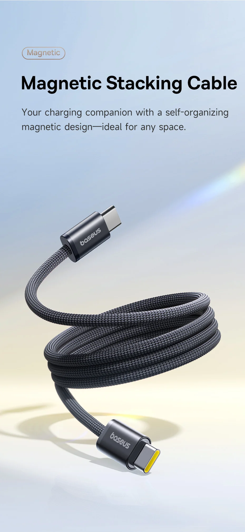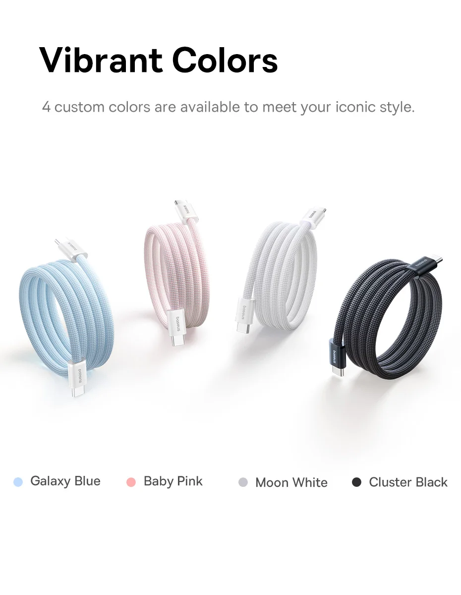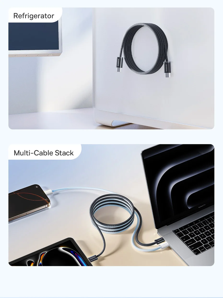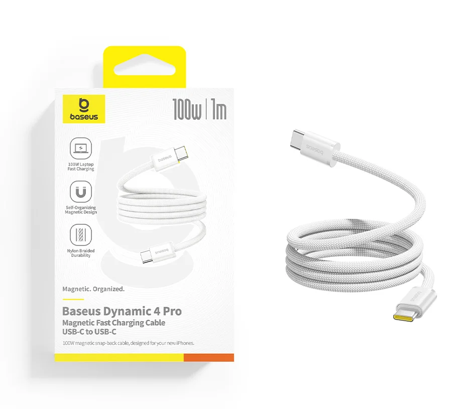 Baseus Dynamic 4 Pro 100W 20V/5A Manyetik Düzenleyici Type-C to Type-C Hızlı Şarj Kablosu 1Metre