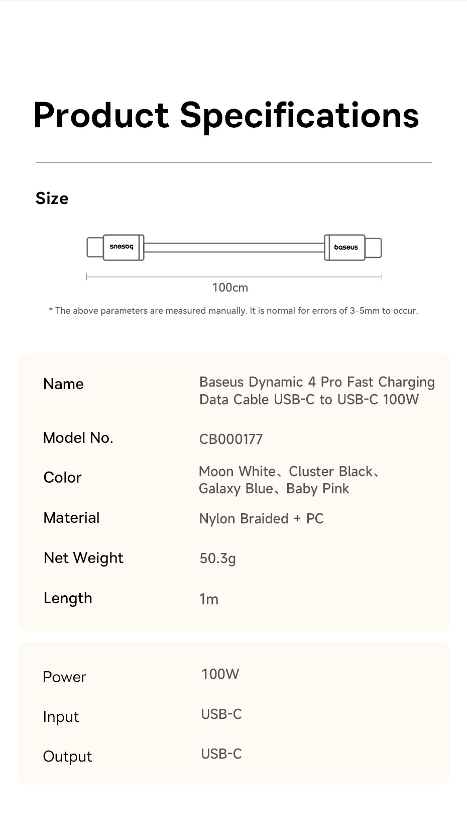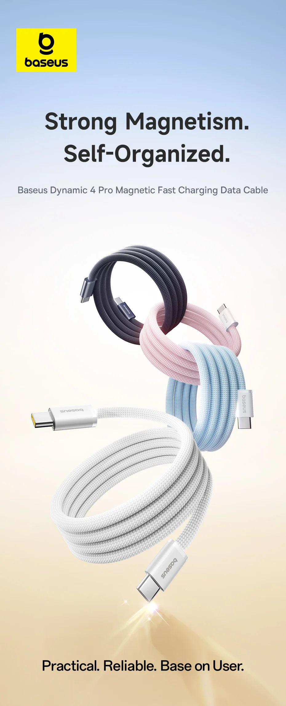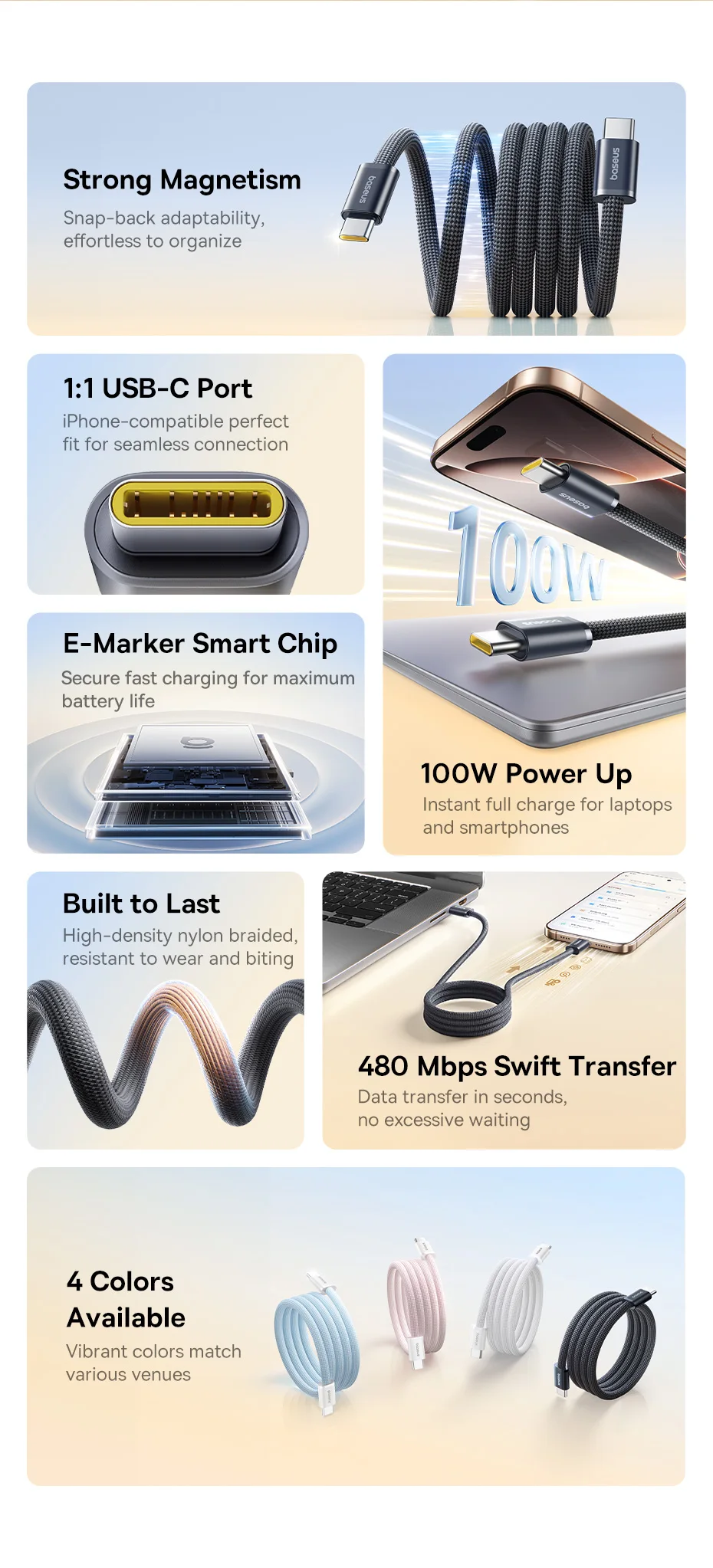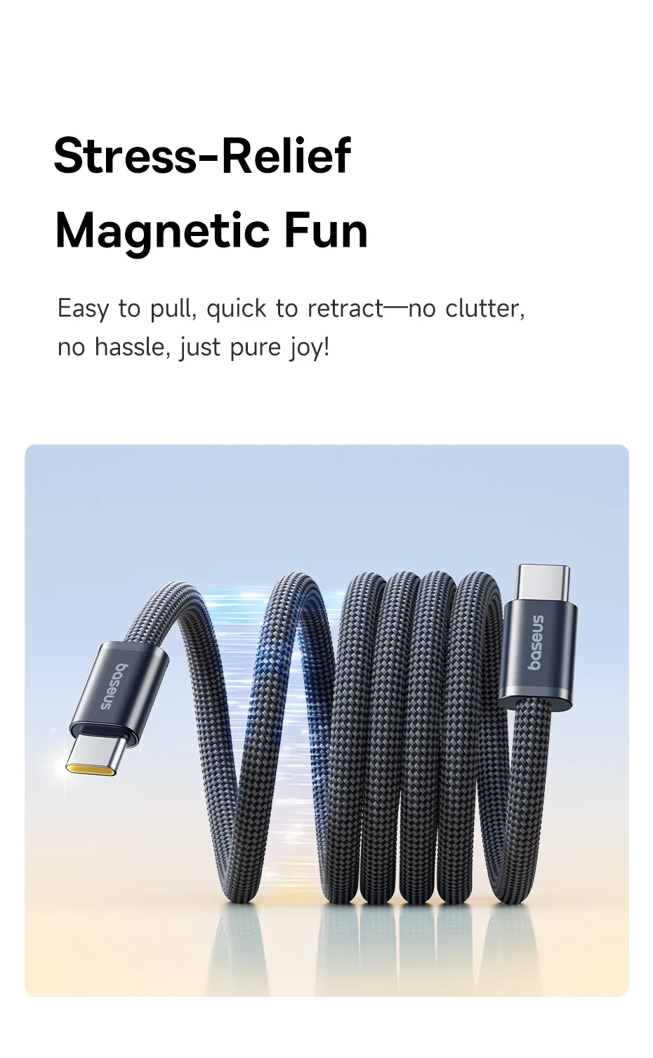 Baseus Dynamic 4 Pro 100W 20V/5A Manyetik Düzenleyici Type-C to Type-C Hızlı Şarj Kablosu 1Metre
