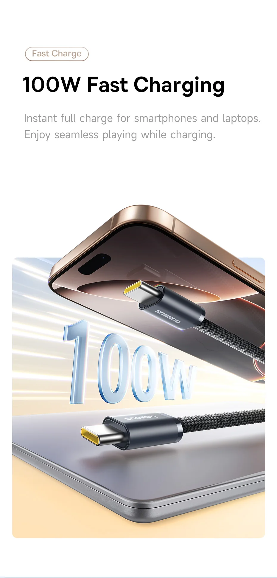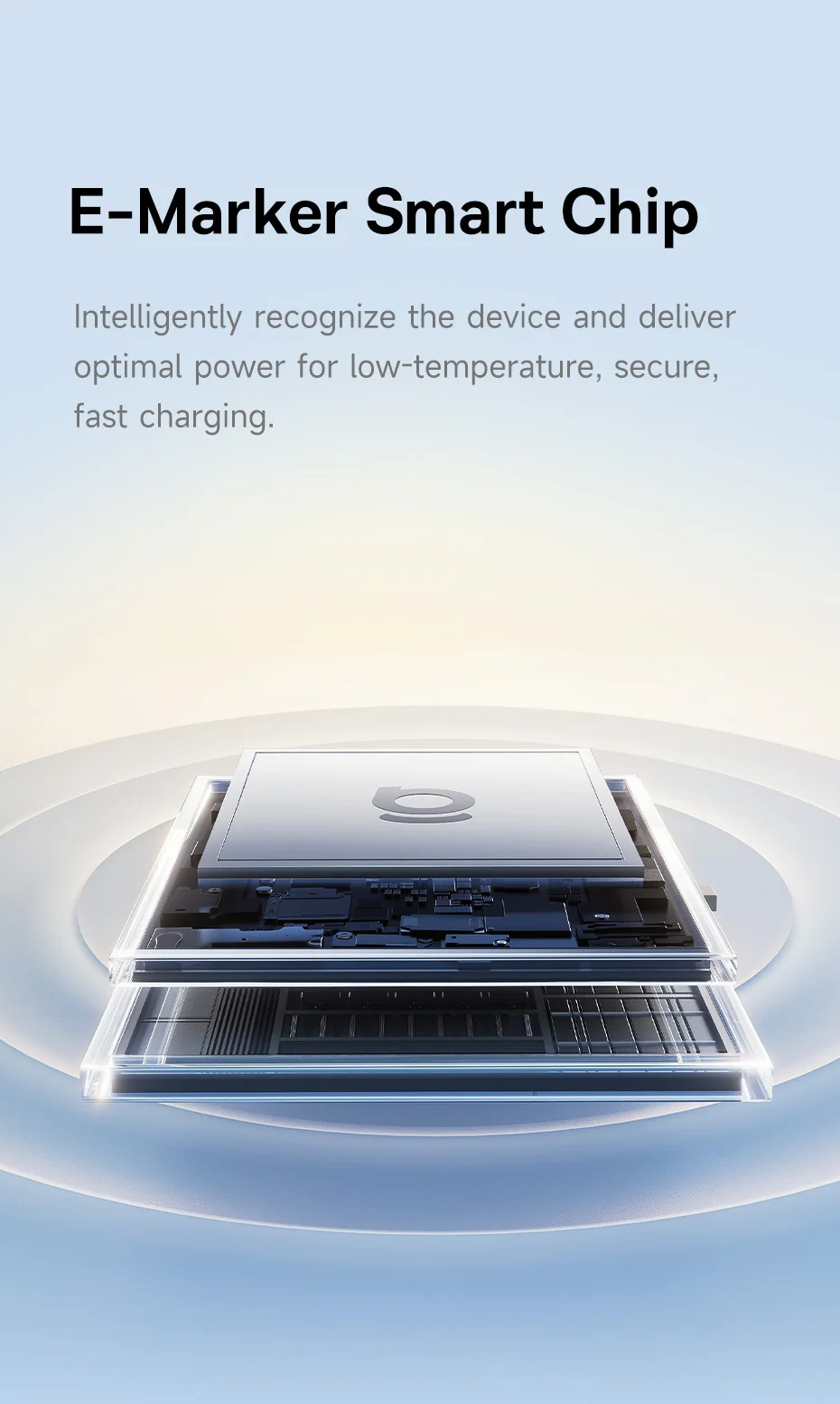Güvenli E-Marker Teknolojisi: Entegre akıllı çip, 100W gücü cihazınıza zarar vermeden iletir. Akımı ve voltajı otomatik dengeleyerek pil sağlığını en üst düzeyde korur.