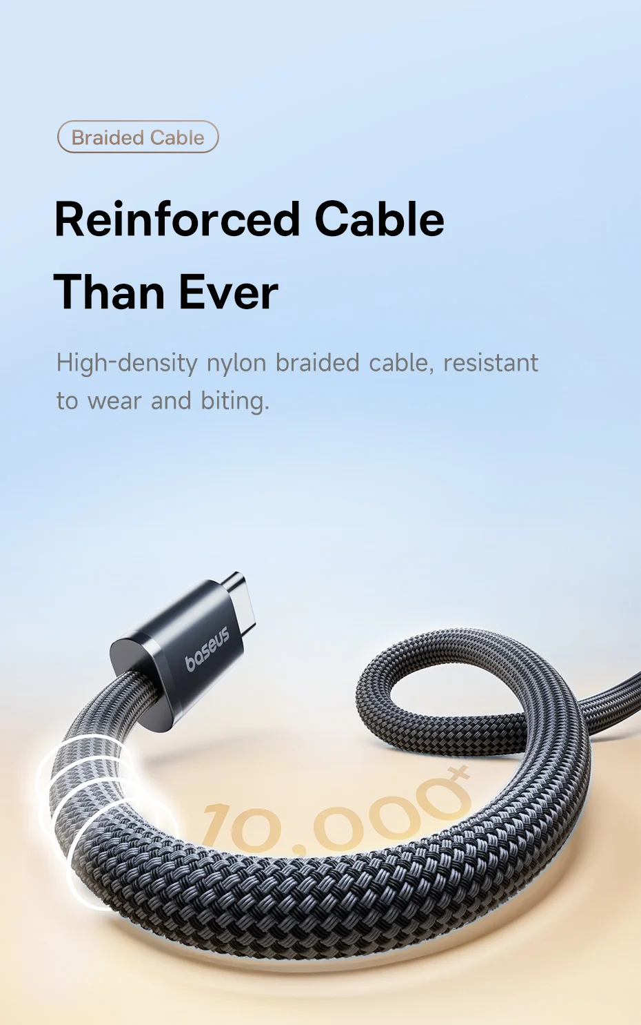 Aşınmaya ve ısırmaya karşı dayanıklı, yüksek yoğunluklu naylon örgülü kablo.