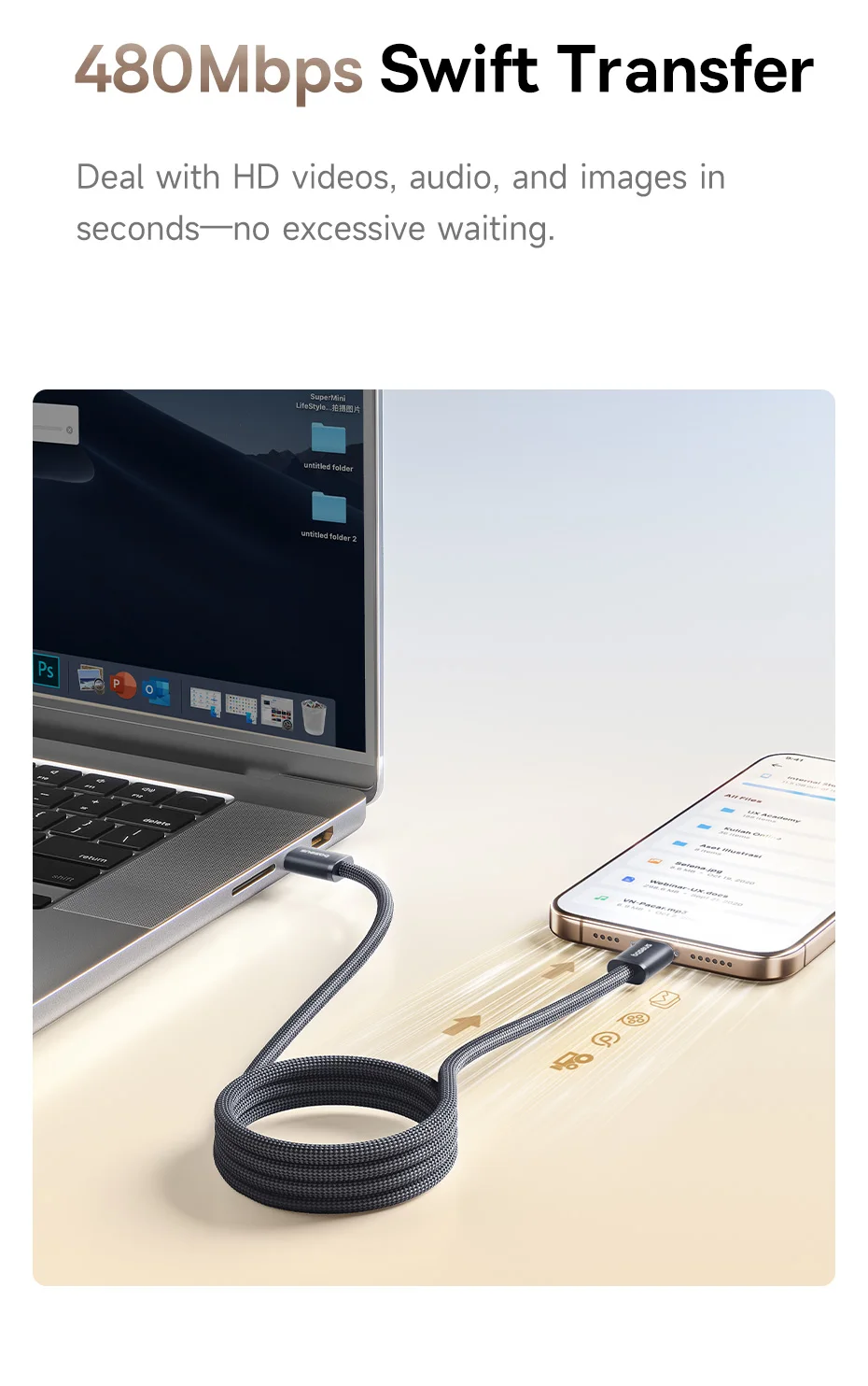 Işık Hızında Veri Senkronizasyonu: 480 Mbps veri aktarım hızıyla dosyalarınızı saniyeler içinde transfer edin. Şarj sırasında kesintisiz ve stabil veri iletimi sağlar.